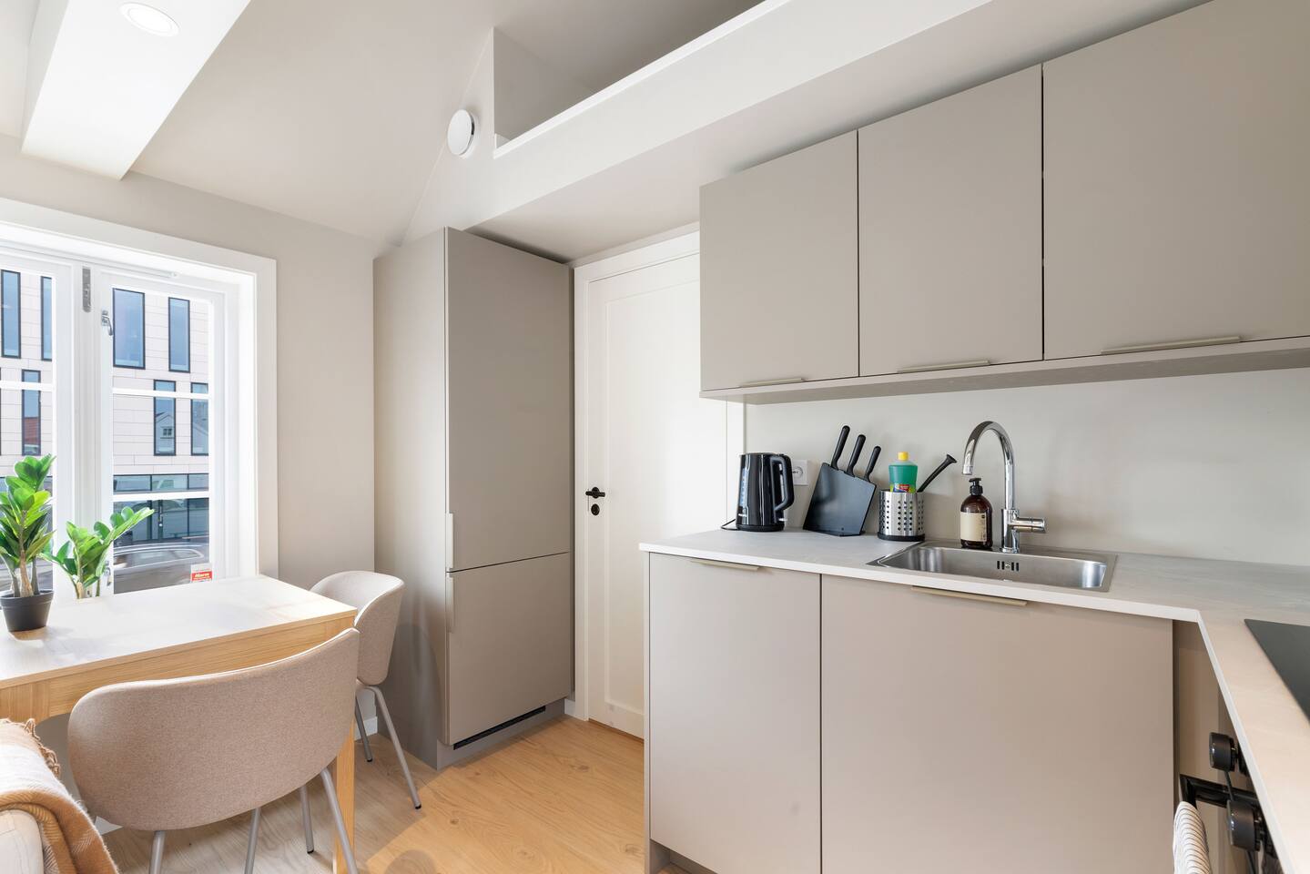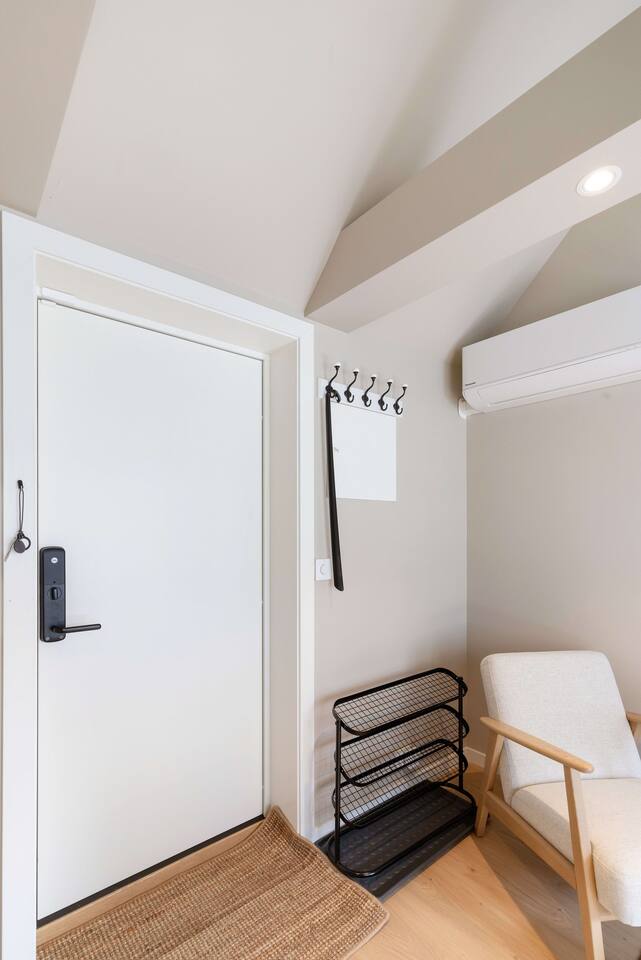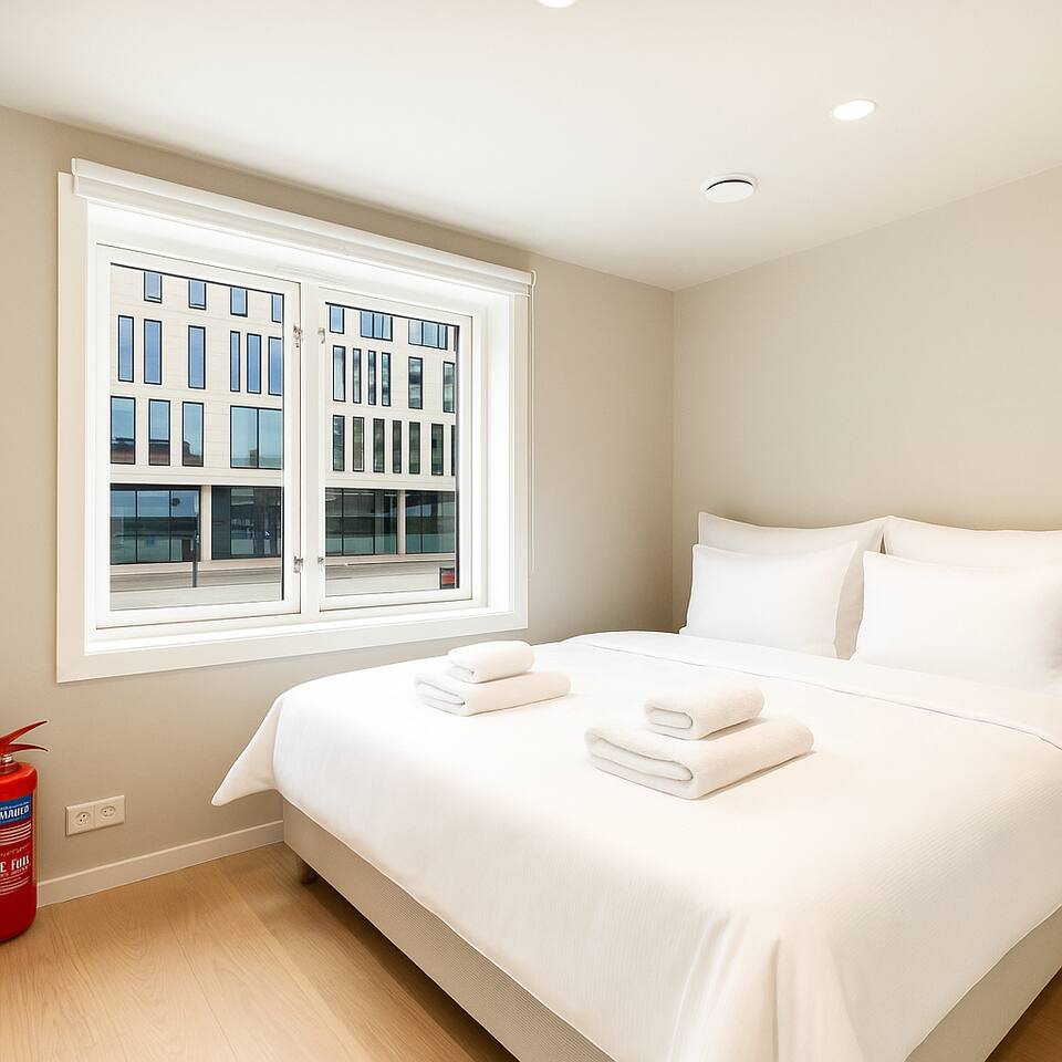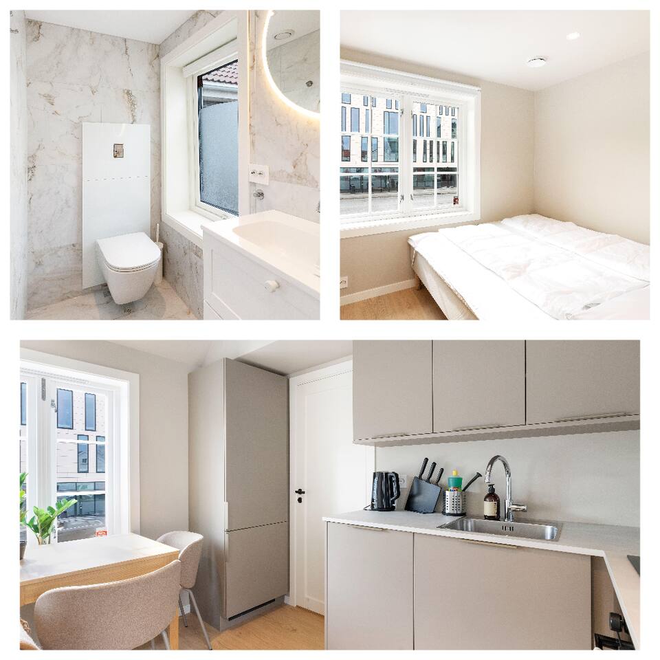 Festningsgata ble nylig renovert for å kombinere ren, moderne design med hyggen av norsk byliv! Leiligheten ligger i andre etasje og er på 30 m² – perfekt for reisende som ønsker et sentralt opphold bare noen skritt fra stranden og bylivet. Forresten – vi har 3 vakre leiligheter i samme bygning! Perfekt for venner eller familier som reiser sammen. AVSTANDER: ➢ 550 m til Torvet og handlegatene ➢ 500 m til Tresse Park ➢ 450 m til Lekeplass Kvadraturen ➢ 450 m til Aquarama Trening & Spa ➢ 400 m til Bystranda ➢ 270 m til Kristiansand Domkirke ➢ 260 m til Vitusapotek Elefanten Kristiansand ➢ 130 m til fornøyelsespark ♡ Lys stue med SMART-TV + Chromecast ♡ Fullt utstyrt kjøkken med spiseplass ♡ Rask Wi-Fi og stilige møbler ♡ Gulvvarme på badet SOVEPLASSER Leiligheten har 3 soveområder. Sengestørrelsene er: 160cm, 160 cm og 145 cm PLANLØSNING Inngang | Soverom 1 | Loftsoverom | Kjøkken | Bad | Stue | Balkong TRANSPORT OG PARKERING Parkering: Gateparkering er tilgjengelig via SmartPark-appen ✈︎ Fra Kristiansand Lufthavn: 20 minutter med bil eller buss til sentrum